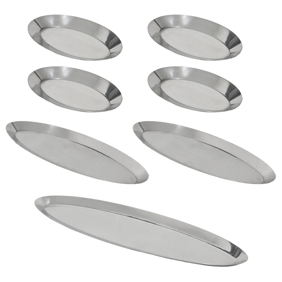 Set 7 plats ovales en métal argenté 4x18cm + 2x30cm + 1x48cm