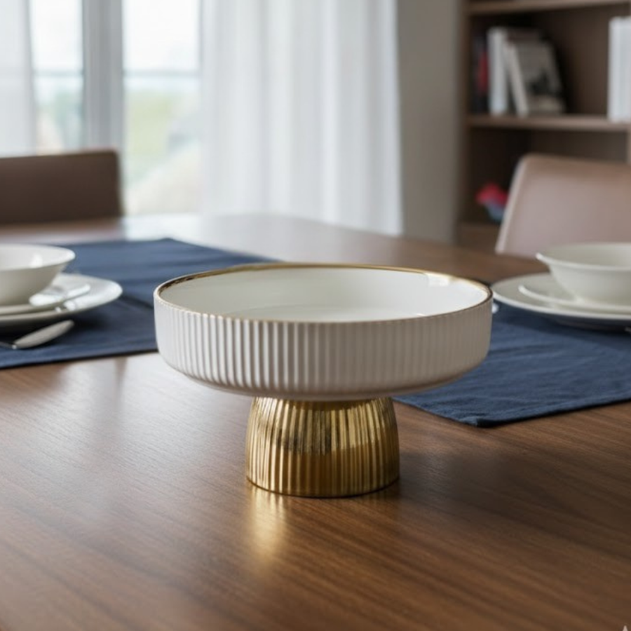 Présentoir blanc avec pied doré en porcelaine 26cm
