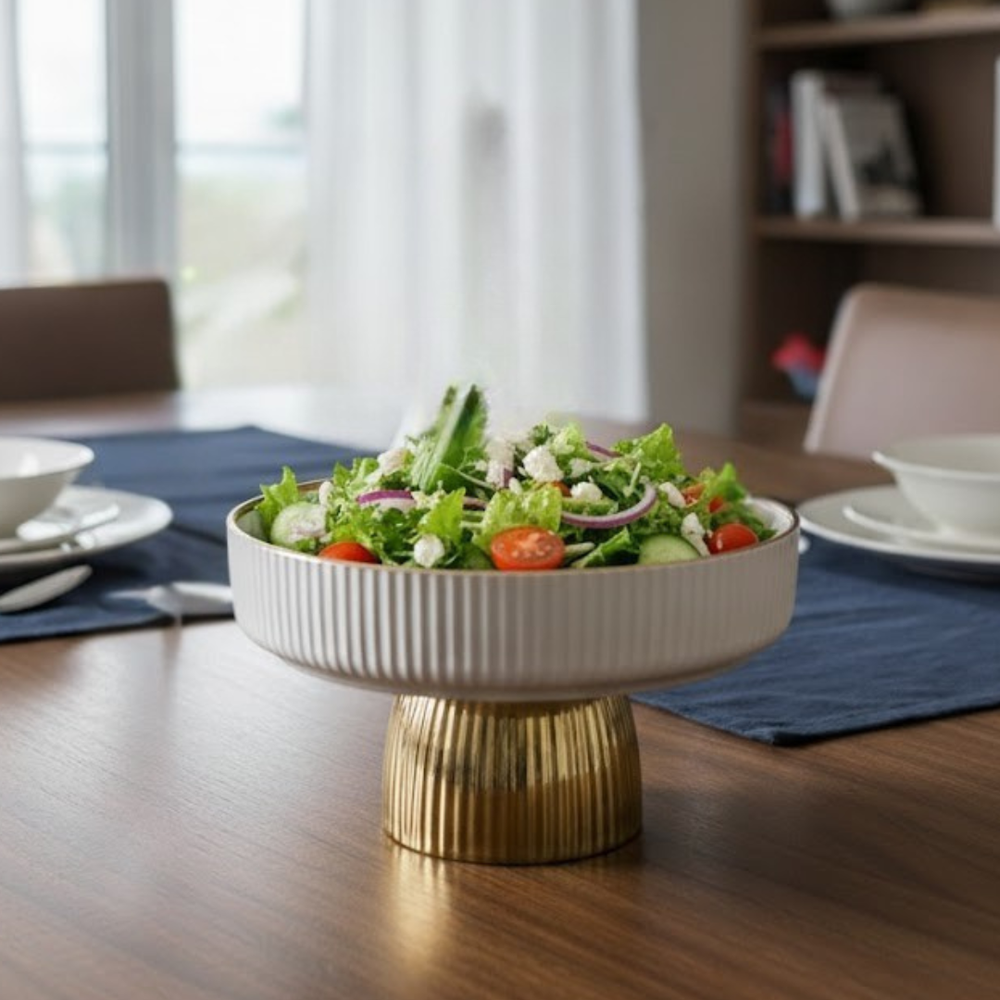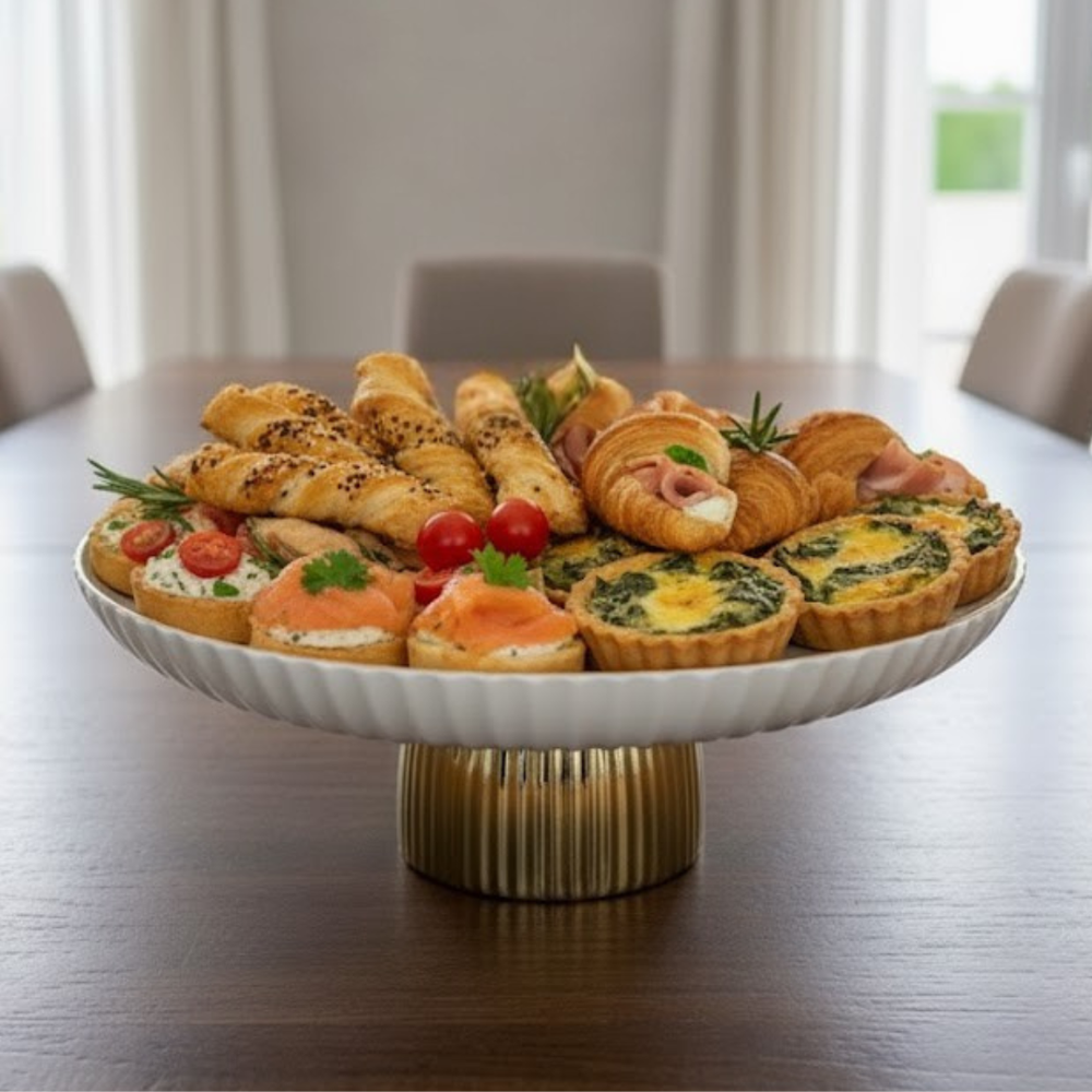 Présentoir blanc avec pied doré en porcelaine 30cm