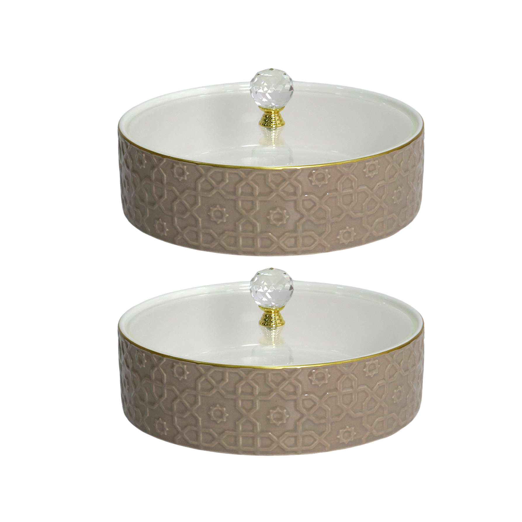 - Apportez une touche raffinée à votre table ou à votre intérieur avec ce lot de 2 bonbonnières en céramique (18 cm),