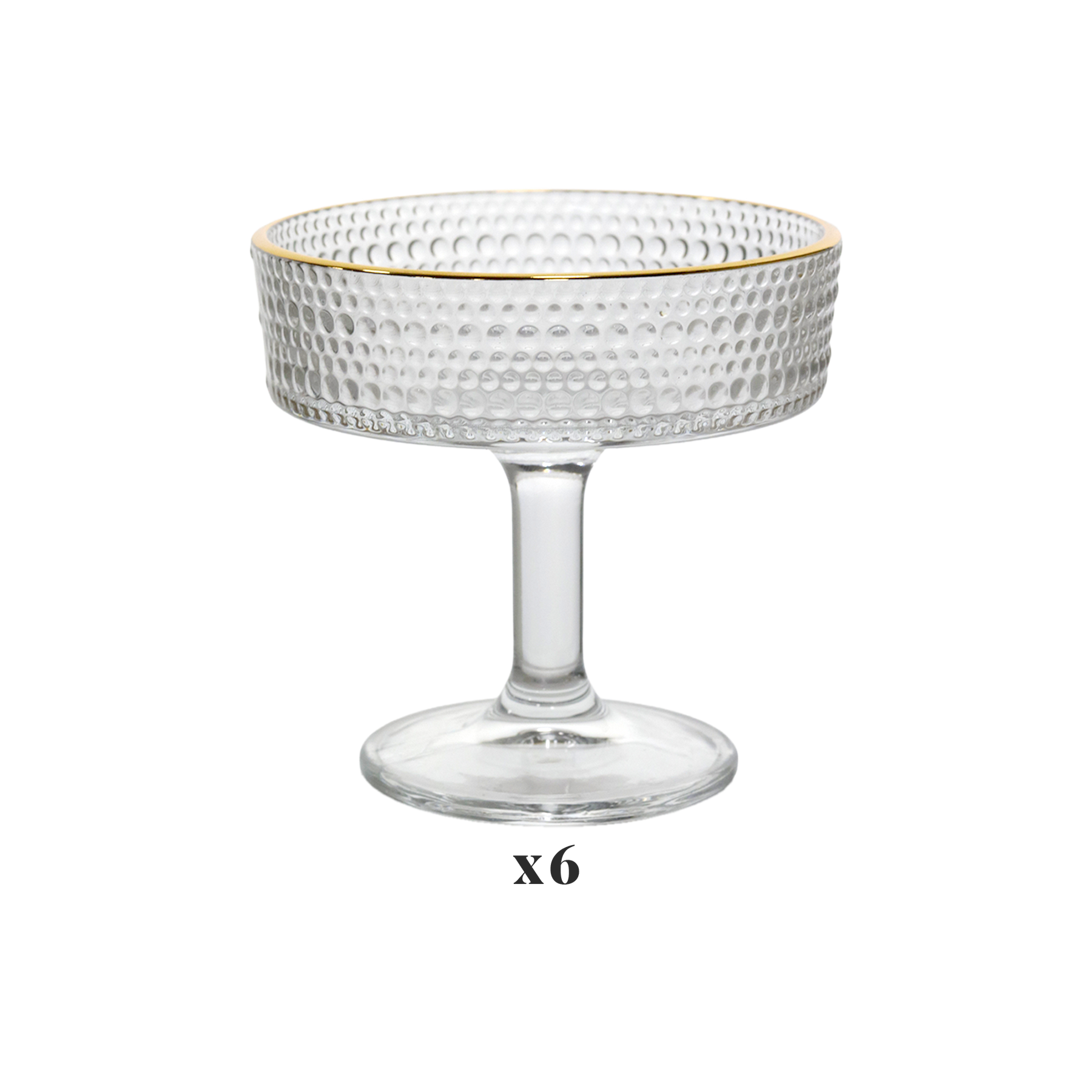 Ce set comprend 6 coupelles en verre de deux tailles, idéales pour présenter des desserts, des fruits ou des apéritifs.