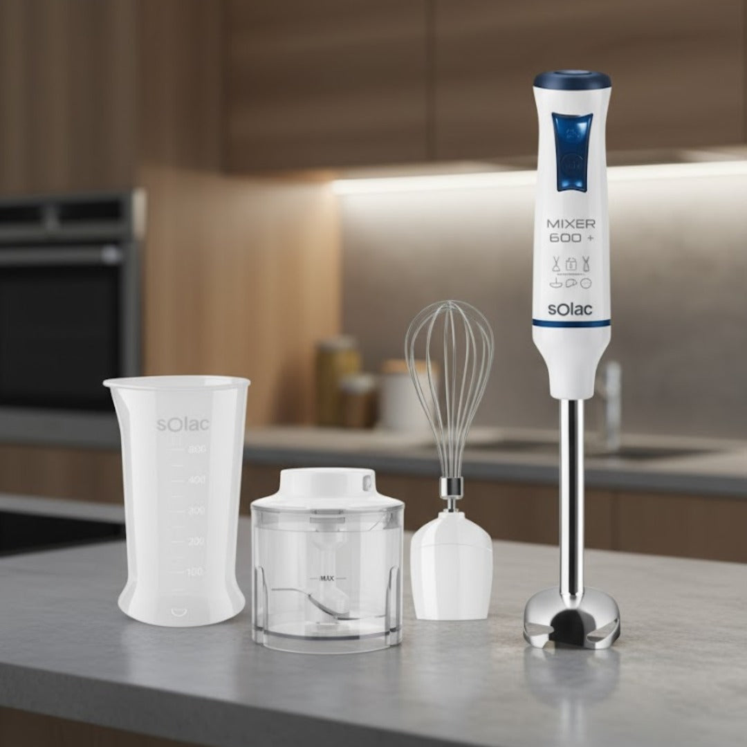 Le Robot Mixeur 600 Plus Inox de Solac est un appareil puissant et pratique, idéal pour toutes vos préparations culinaires.