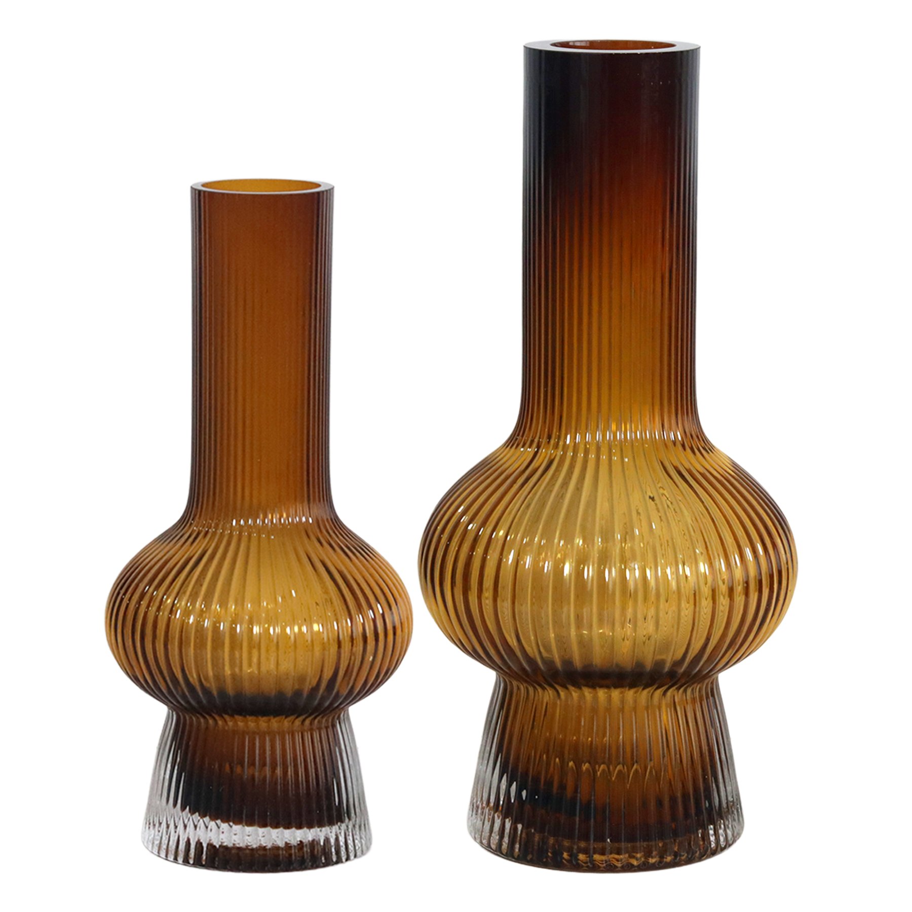Ajoutez une touche d'élégance à votre intérieur avec ce set de 2 vases en verre marron, parfaits pour mettre en valeur vos fleurs ou comme éléments décoratifs. Les vases mesurent respectivement 9 x 26 cm et 11 x 33 cm.