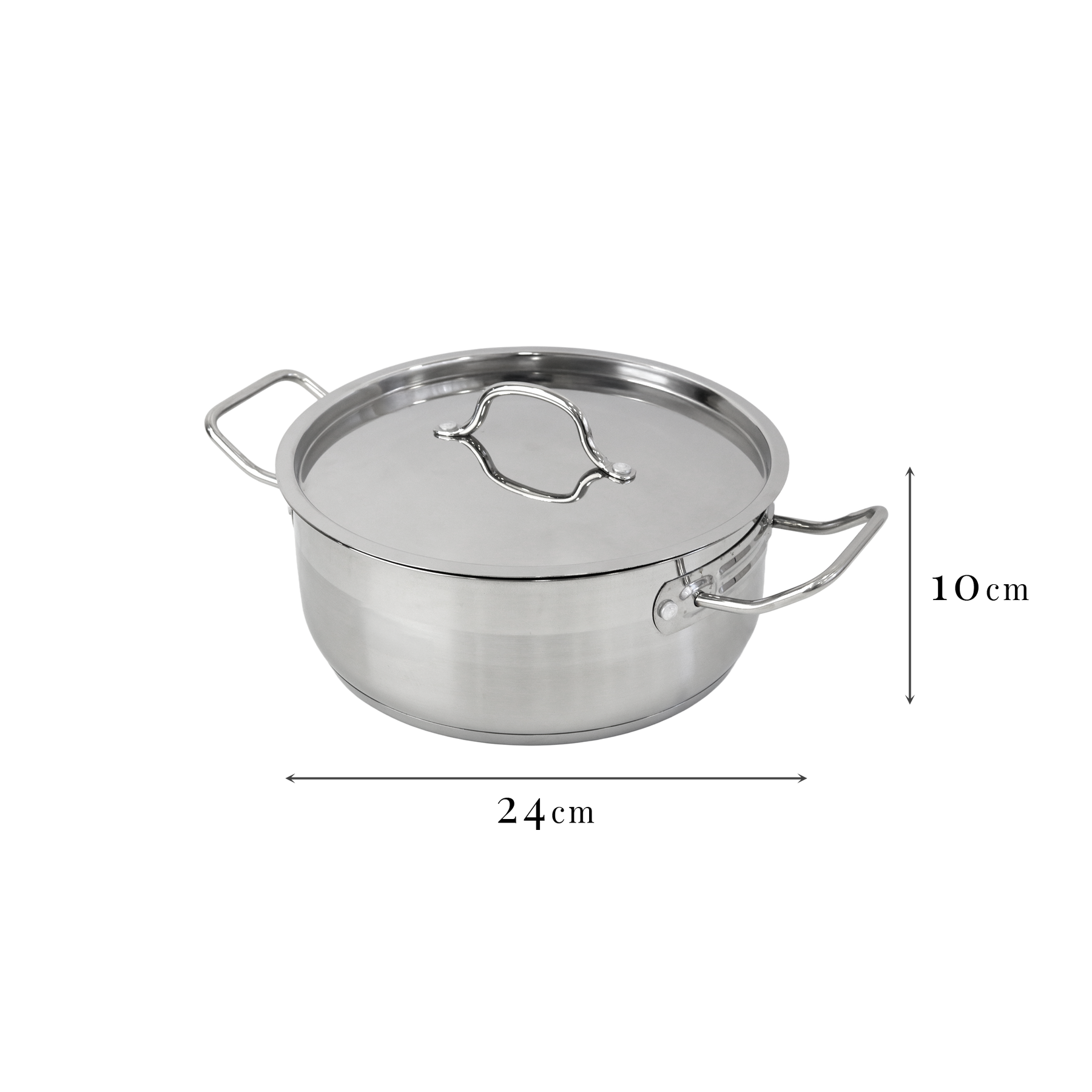 - Dimensions : 24 cm de diamètre et 10 cm de hauteur, idéale pour cuire des soupes, des sauces ou des plats mijotés.