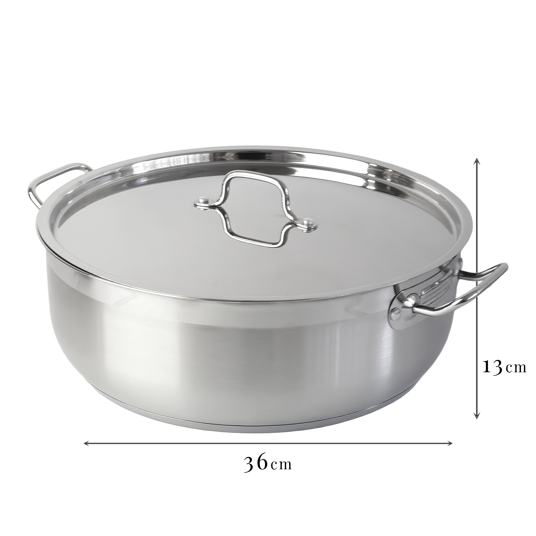 - Dimensions : 36 cm de diamètre et 13 cm de hauteur, parfaite pour cuisiner des plats comme des soupes, des ragoûts et des pâtes.