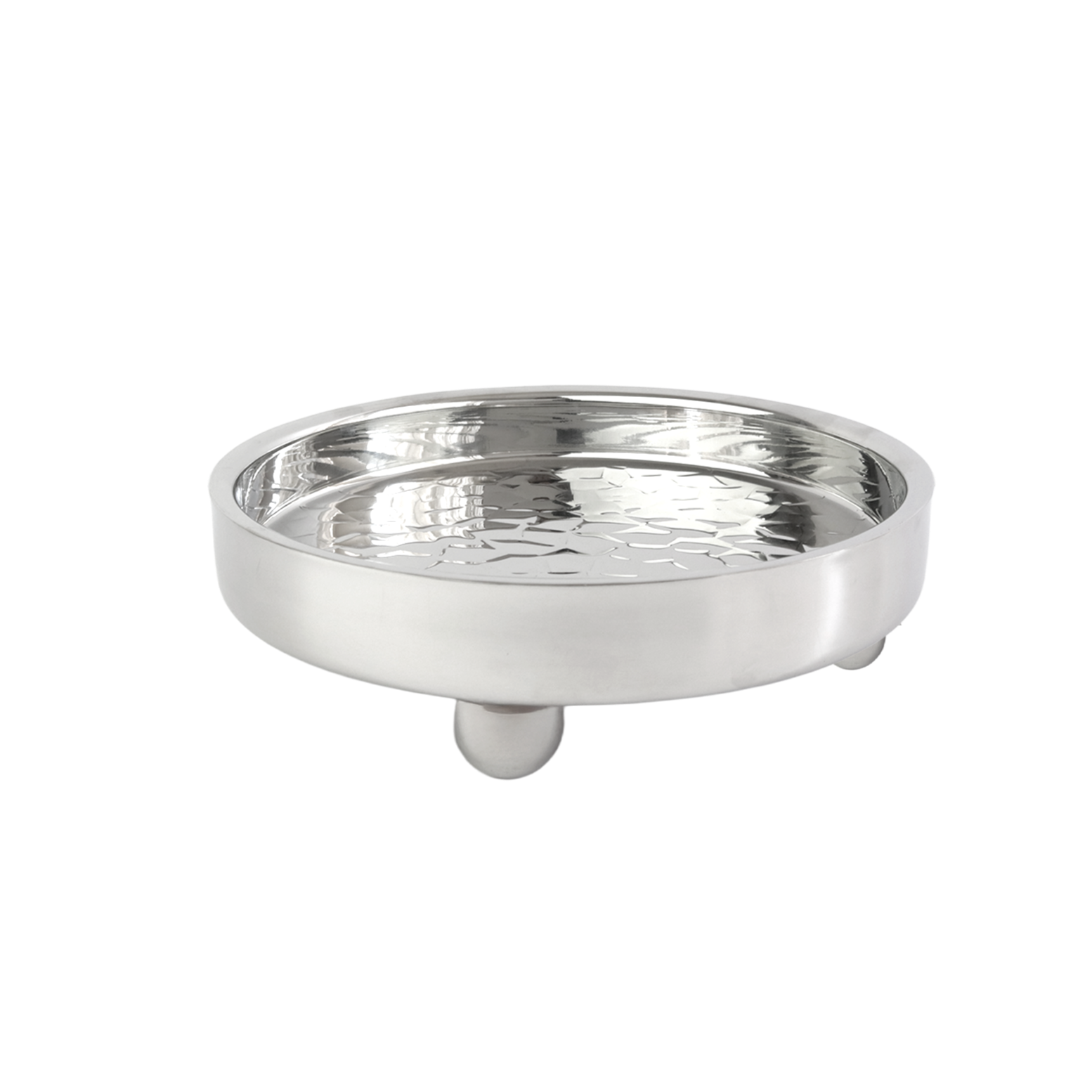 Apportez une touche d'élégance à votre table avec ce présentoir en inox argenté, doté de pieds boules.