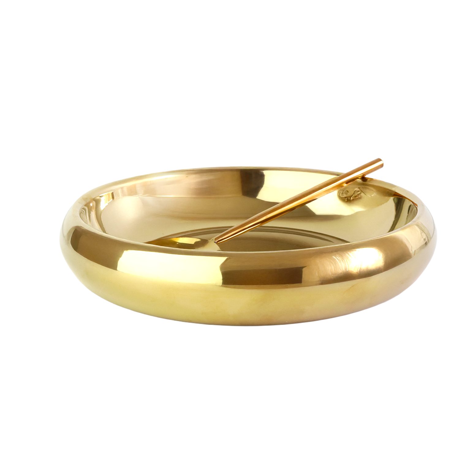 Apportez une touche luxueuse à vos repas avec ce bol en inox doré, accompagné de sa cuillère.