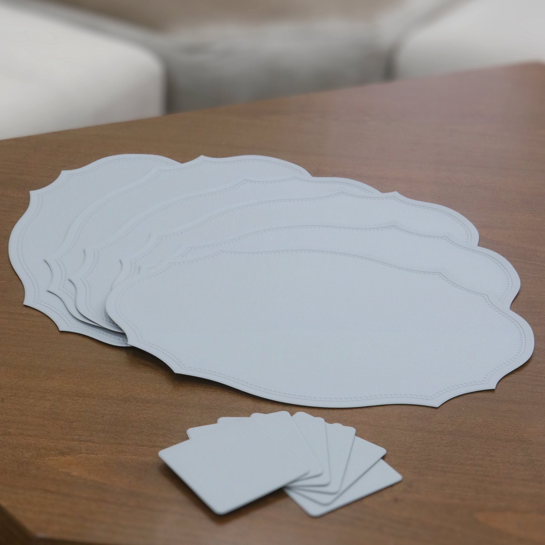 Ensemble de 6 Sets de Table ovales (45 x 30 cm) en Simili Cuir + 6 Sous-Tasses Carrés (10 cm)