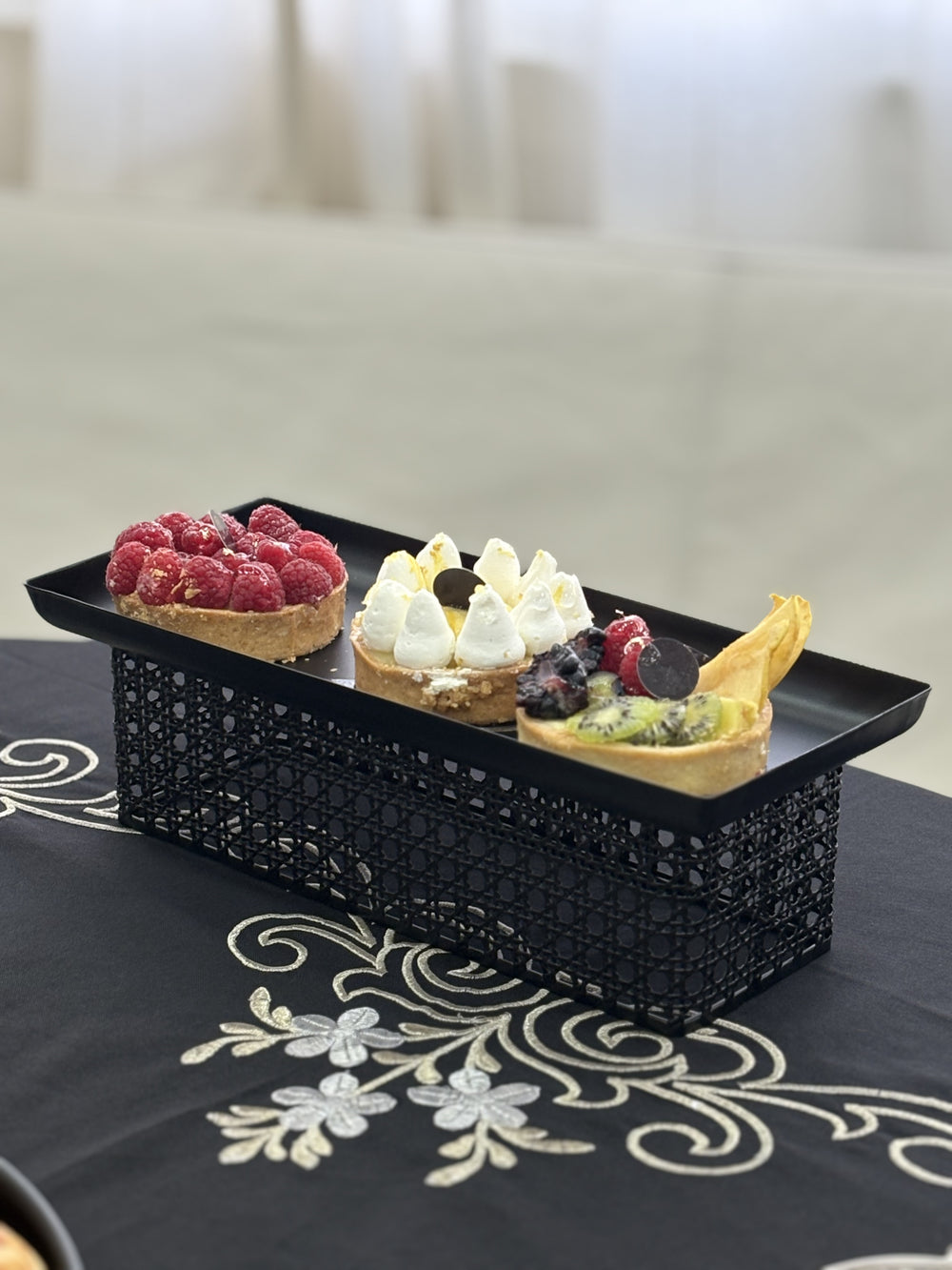 - Ce plat élégant est parfait pour mettre en valeur vos apéritifs, desserts ou fruits.
