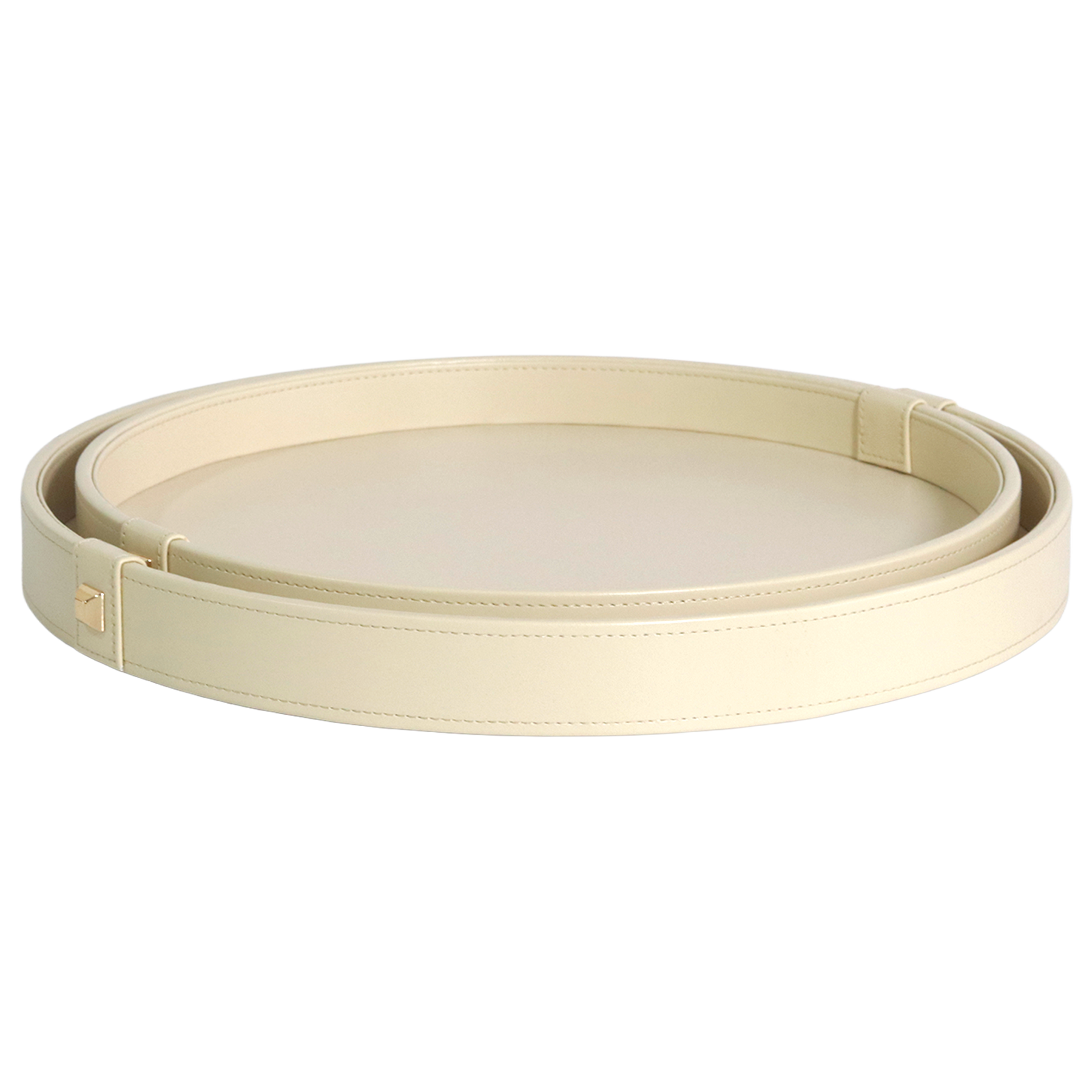 Ce charmant ensemble de 2 plateaux ronds en cuir beige est idéal pour servir ou décorer. Avec des dimensions de 36 cm et 40 cm, ils ajouteront une touche élégante à votre intérieur.