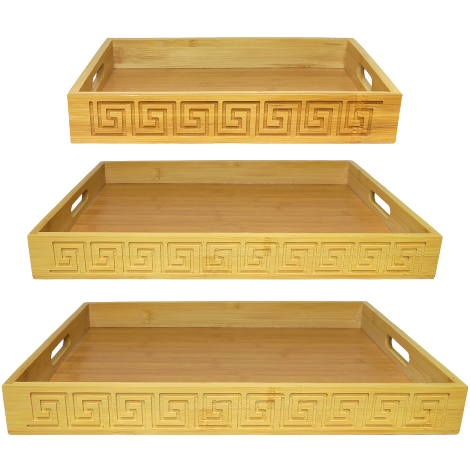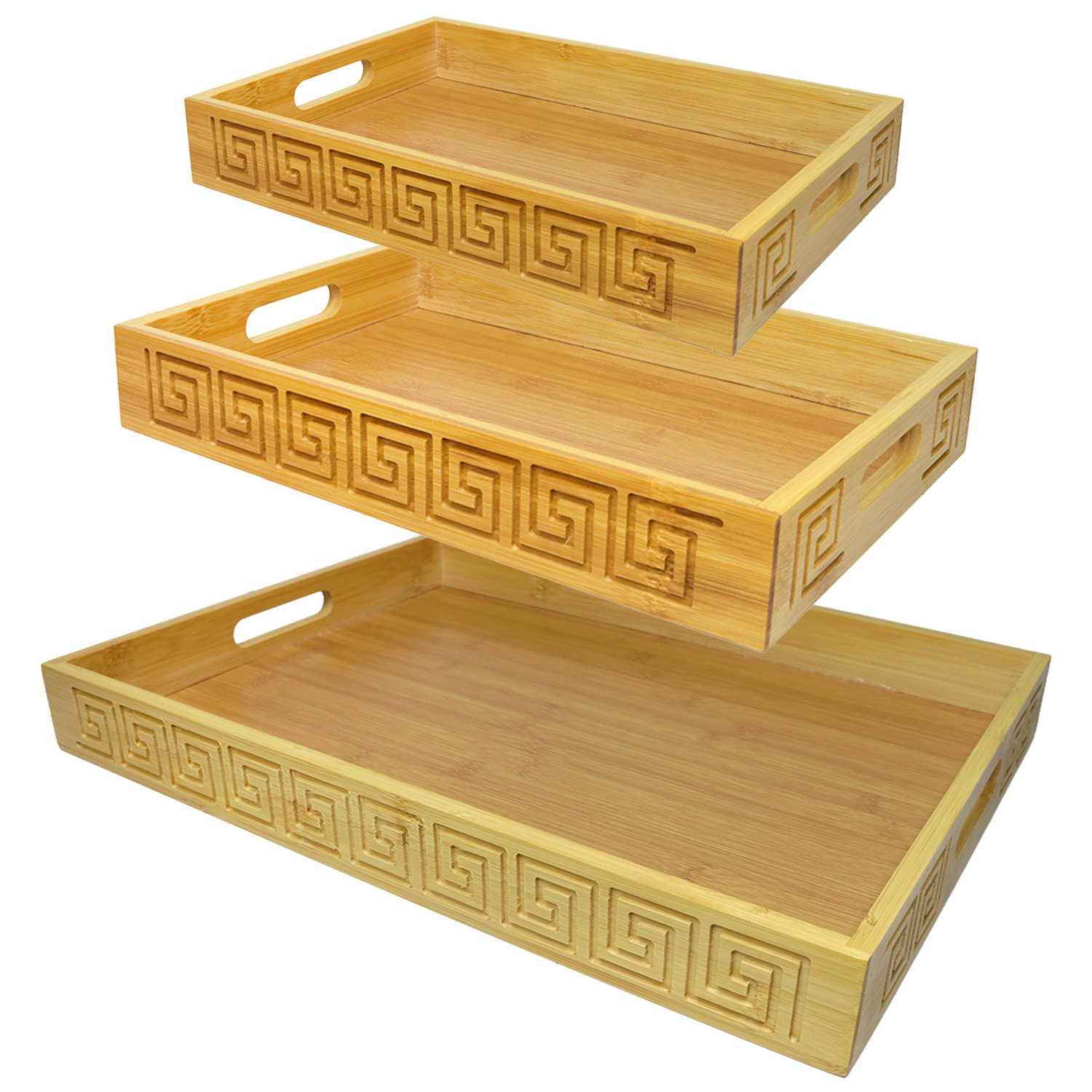 Ajoutez une touche naturelle à votre décoration avec ce set de plateaux en bois.