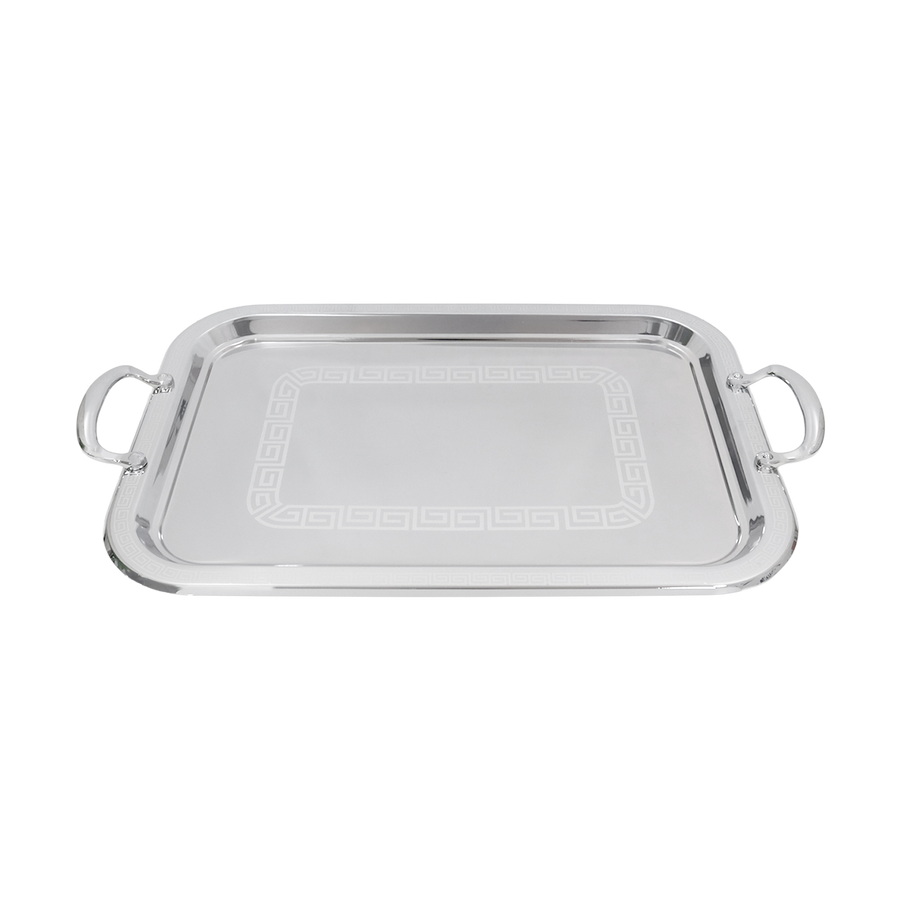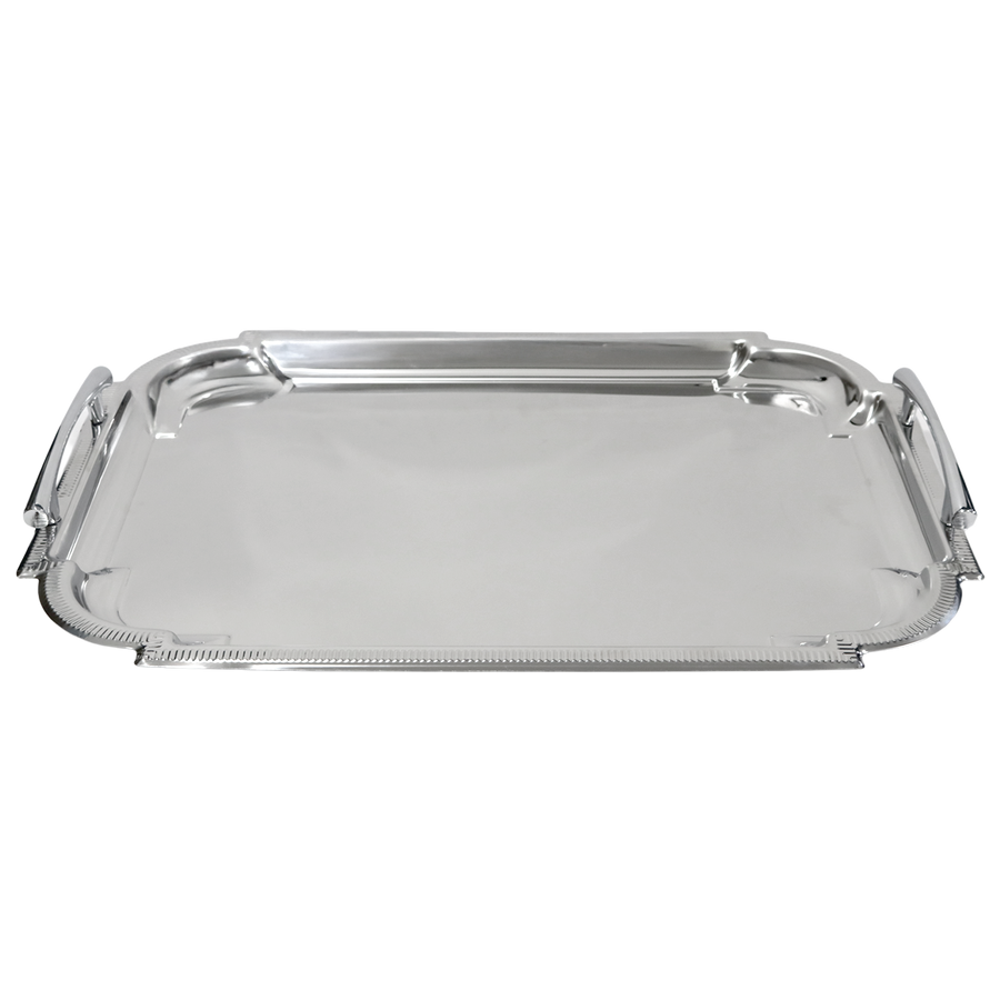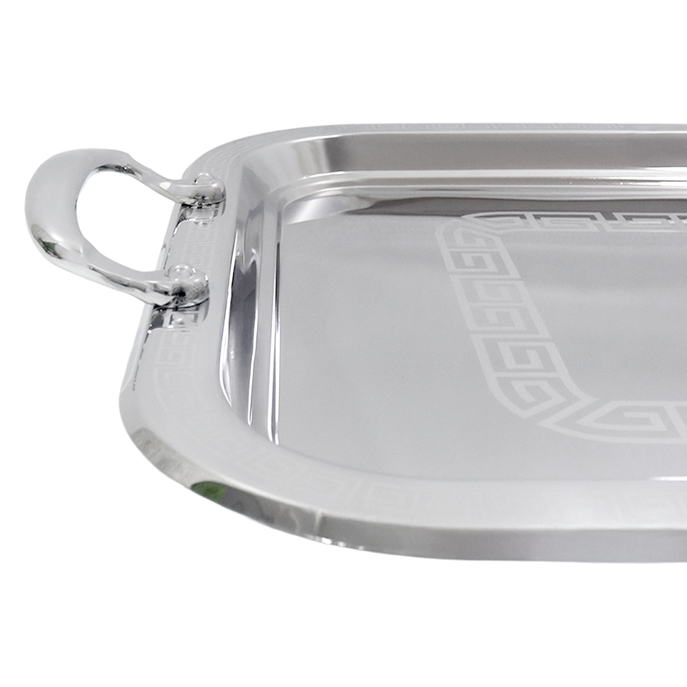 Plateau en inox argenté avec 2 manches dorés 35x24cm
