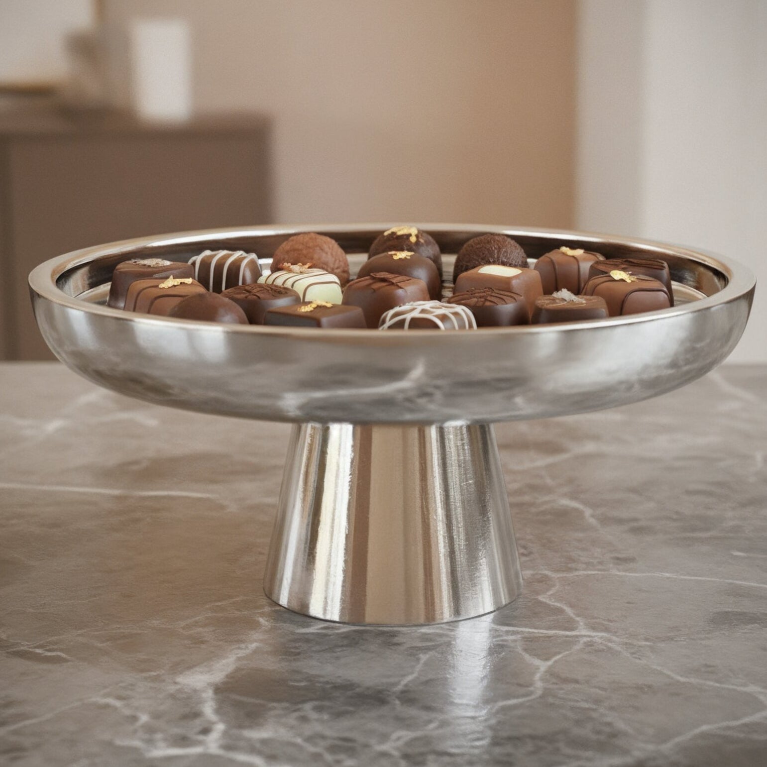 Mettez en valeur vos plats avec ce présentoir en inox argenté, idéal pour toutes les occasions.