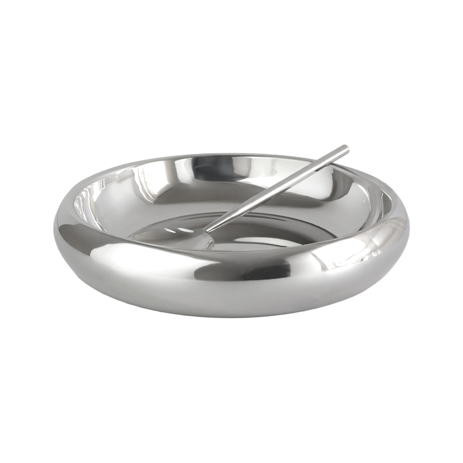 Ajoutez une touche d'élégance à vos repas avec ce bol en inox argenté, accompagné de sa cuillère.