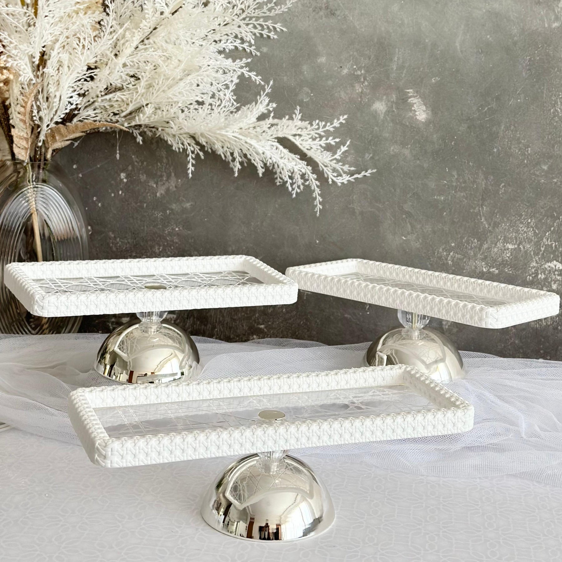 Ce set de présentoirs en plexiglass est parfait pour mettre en valeur vos pâtisseries, desserts ou objets décoratifs.