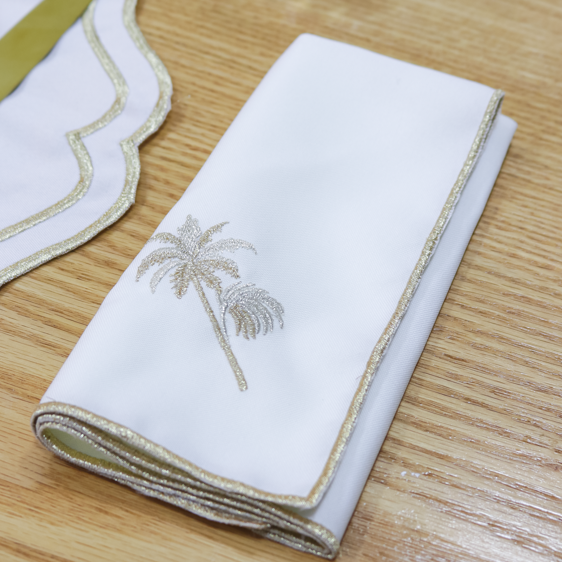 Un ensemble élégant comprenant 6 sets de table ovales et 6 serviettes au motif palmier, idéal pour apporter une touche tropicale à vos repas.