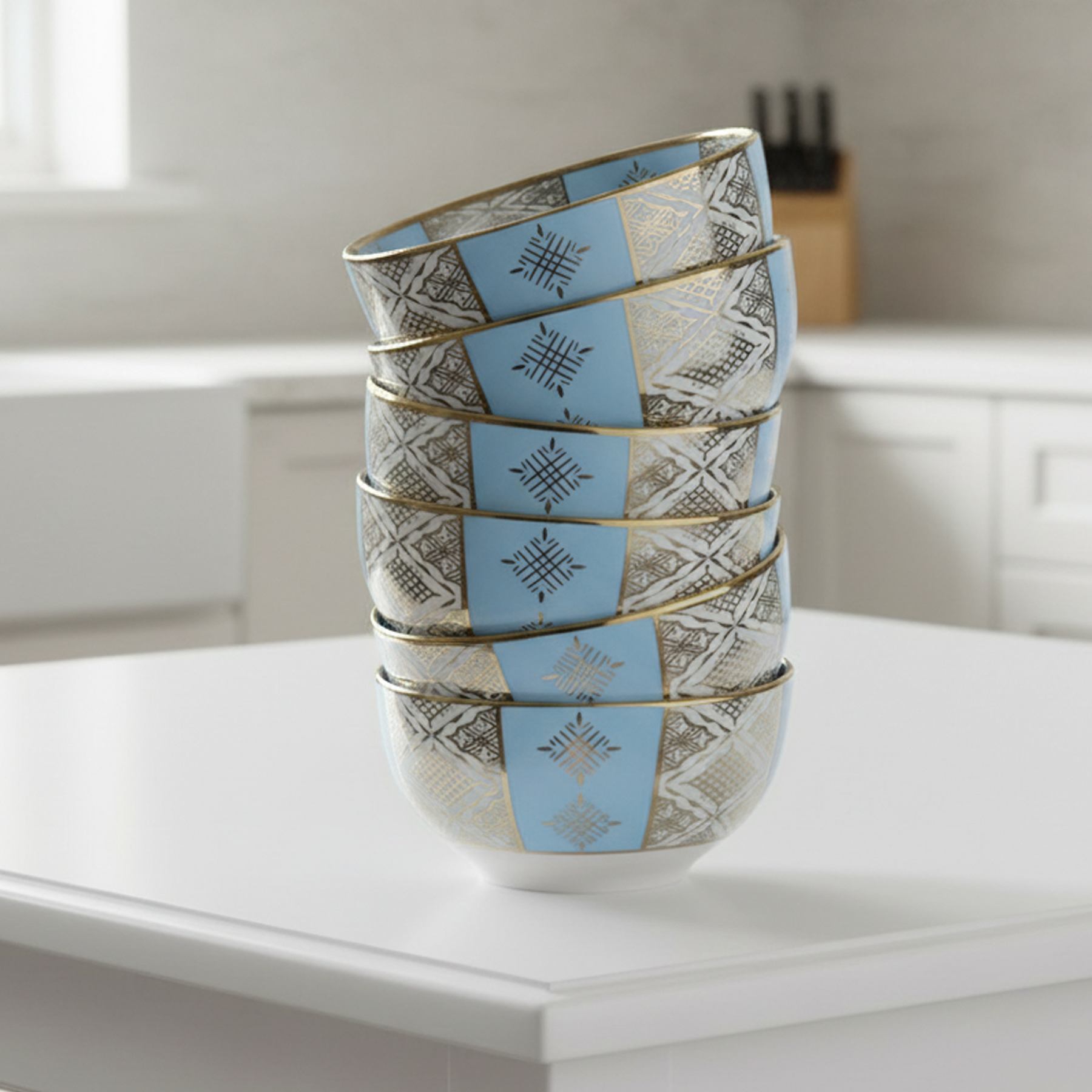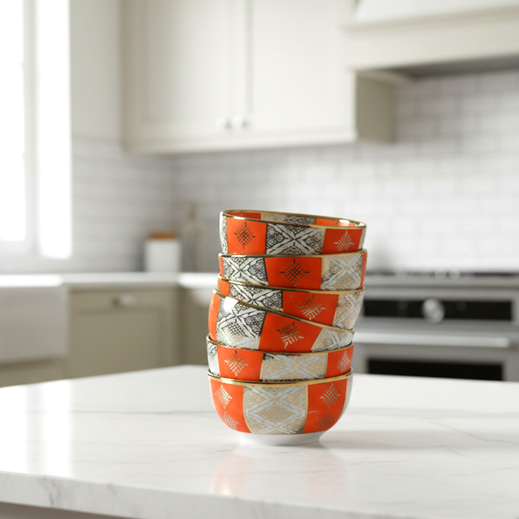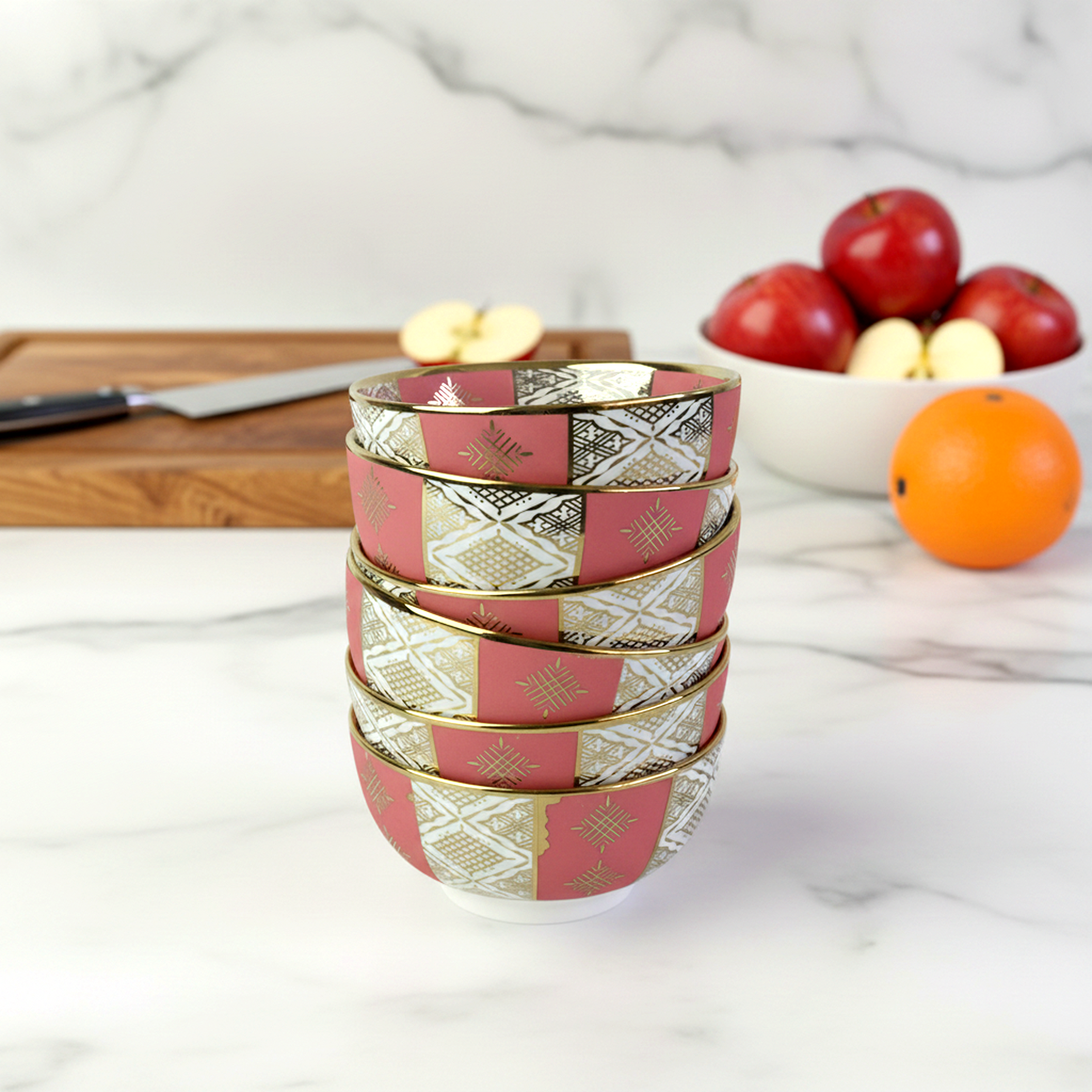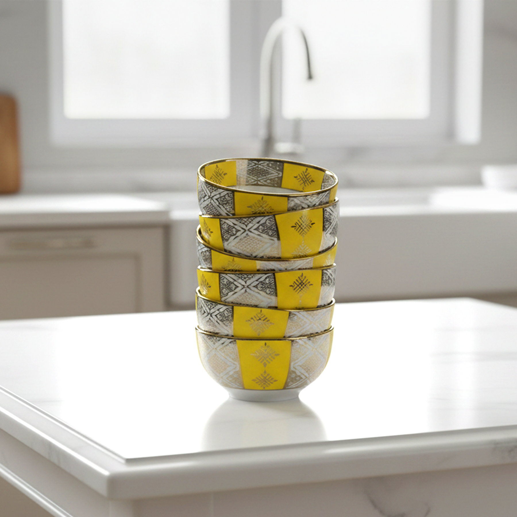 Ajoutez une touche artisanale et conviviale à vos repas avec ce set de 6 bols à motif Beldi, parfaits pour des portions individuelles ou pour le service.
