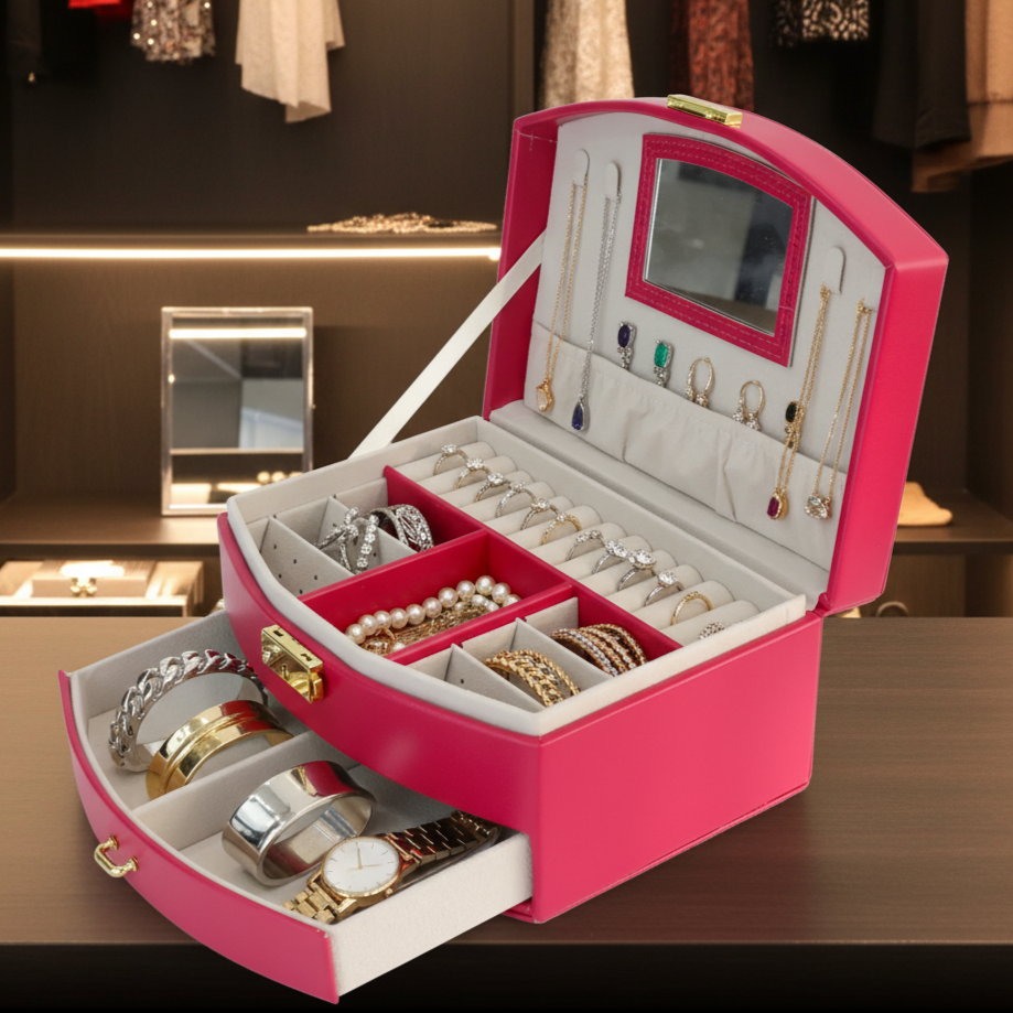 Organisez vos bijoux avec élégance grâce à cette boîte à bijoux en simili cuir, parfaite pour garder vos trésors en sécurité.