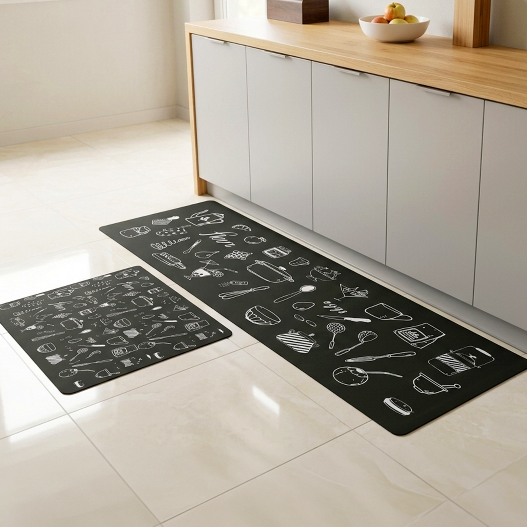 Apportez confort et praticité à votre cuisine avec ce set de 2 tapis imperméables. Conçus pour protéger votre sol tout en offrant un maximum de confort, ils sont parfaits pour les zones les plus utilisées comme devant l’évier ou le plan de travail.