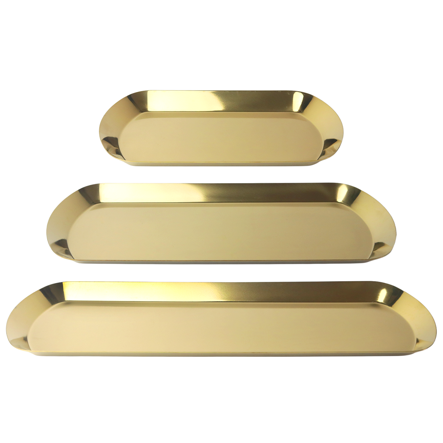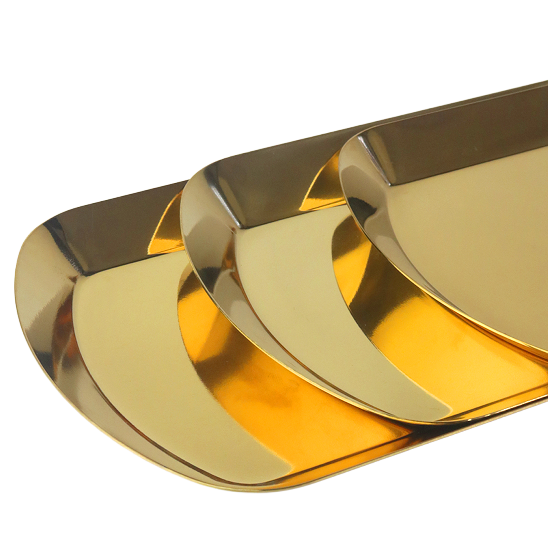 Set 3 plateaux en métal doré 26cm + 36cm + 46cm